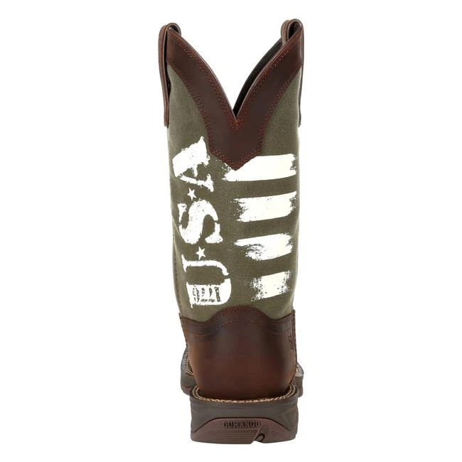 This style features a full-grain leather foot, collar and pull straps with a canvas shaft. Inside it has a soft mesh lining, the Durango X-Pand System which is a hidden gore expansion for universal fit and easy on/off, the Durango X-Treme Comfort Footbed with memory foam for all day comfort and support, and a cushion flex insole. This style also features a fiberglass shank which provides lightweight stability and the rolled shank area allows easy placement in the stirrup. The molded EVA midsole is lightweight and flexible, and the outsole is slip and oil resistant, dual-density and abrasion resistant rubber. This style also features a double row sole stitch, 1 ½” rocker heel and square toe.