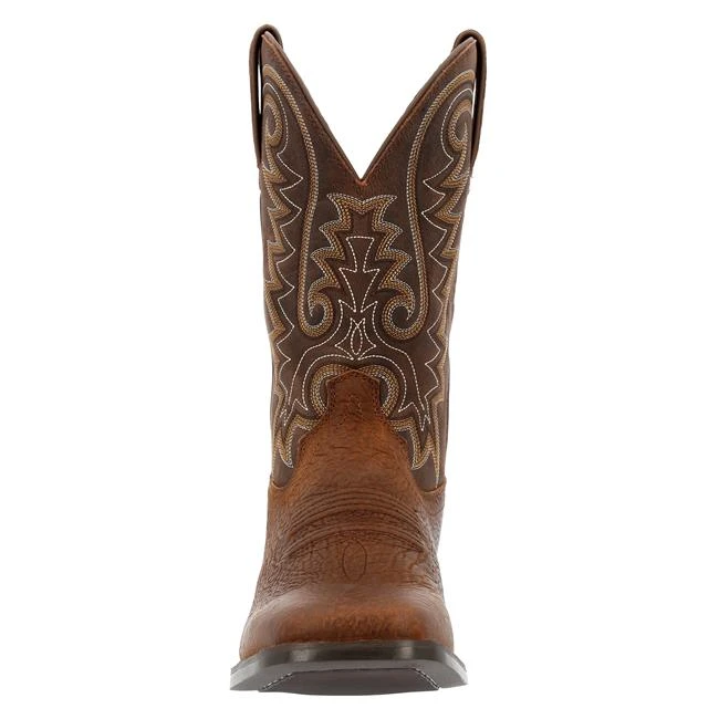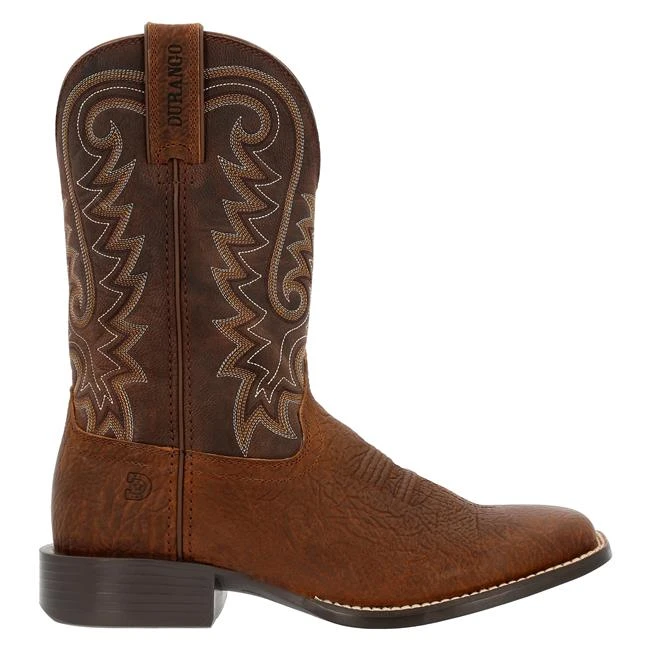 This Men’s Durango Westward Cowboy Boot comes with an Advanced Comfort Cushion to keep you feeling great. The cushion uses a blend of cushion and gel to cradle the foot and absorb shock off of your step. For long hours in your boots, the rubber outsole offers longer wear-resistance—plus better traction on slick surfaces. These western boots have a weathered foot and a rugged brown top.