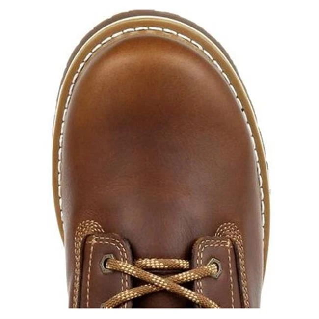 The Georgia Boot Wedge Waterproof Work Boot takes comfort and durability to the next level. The upper on this 6″ waterproof wedge lace-up work boot features our premium SPR leather. It’s three times as strong and two and a half times more abrasion resistant compared to traditional leathers. It resists caustic alkalis and other barnyard acids. Additional features on the upper include dual functioning hardware, the heel stabilizing Counter Lock System and a padded tongue and collar. The interior is lined in mesh and is equipped with the Georgia Waterproof system, guaranteed to keep your feet dry when working in wet conditions. A padded counter pocket gives your heel added support. Also inside is the removable AMP LT insole. A layer of polyurethane topped with memory foam to keep your feet cradled in all day comfort. The foundation of this wedge work boot starts with a fiberglass shank for added support and durability followed by a cushioning EVA midsole. The final layer is the outsole, comprised of our Carbo-Tec rubber, a proprietary blend that contains great slip, oil, chemical, abrasion and heat resisting properties.
